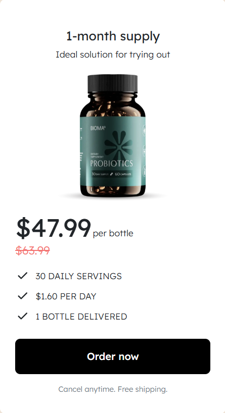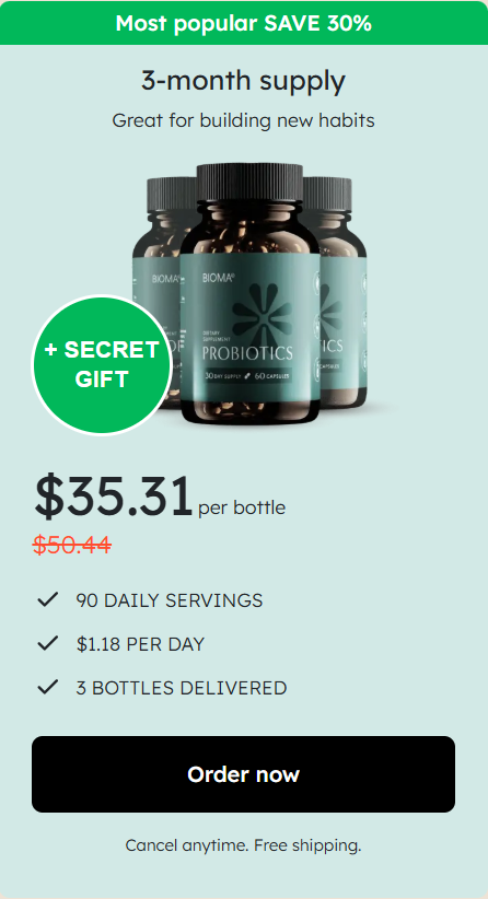Athis moment you can order Bioma Probiotics for 35% OFF + FREE Shipping. This is a Limited-Time Offer and won’t be available for long.